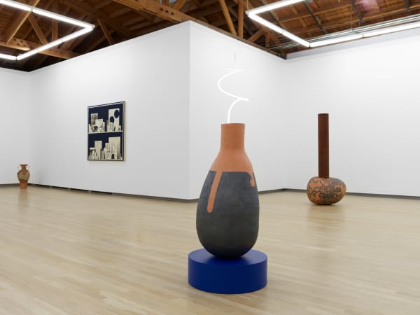 Shulamit Nazarian is pleased to present Los Angeles-based artist Cammie Staros’ first exhibition with the gallery, les vases communicants. The exhibition’s title references surrealist André Breton’s 1932 essay by the same name, which in turn borrows it from the scientific principle of “communicating vessels.” Looking specifically to the shapely vessels of Classical Greece, the artist’s hand-built objects marry ancient ceramic techniques with modern industrial materials such as neon and machined metals. The resulting sculptures are rooted in history, yet disarmingly present.