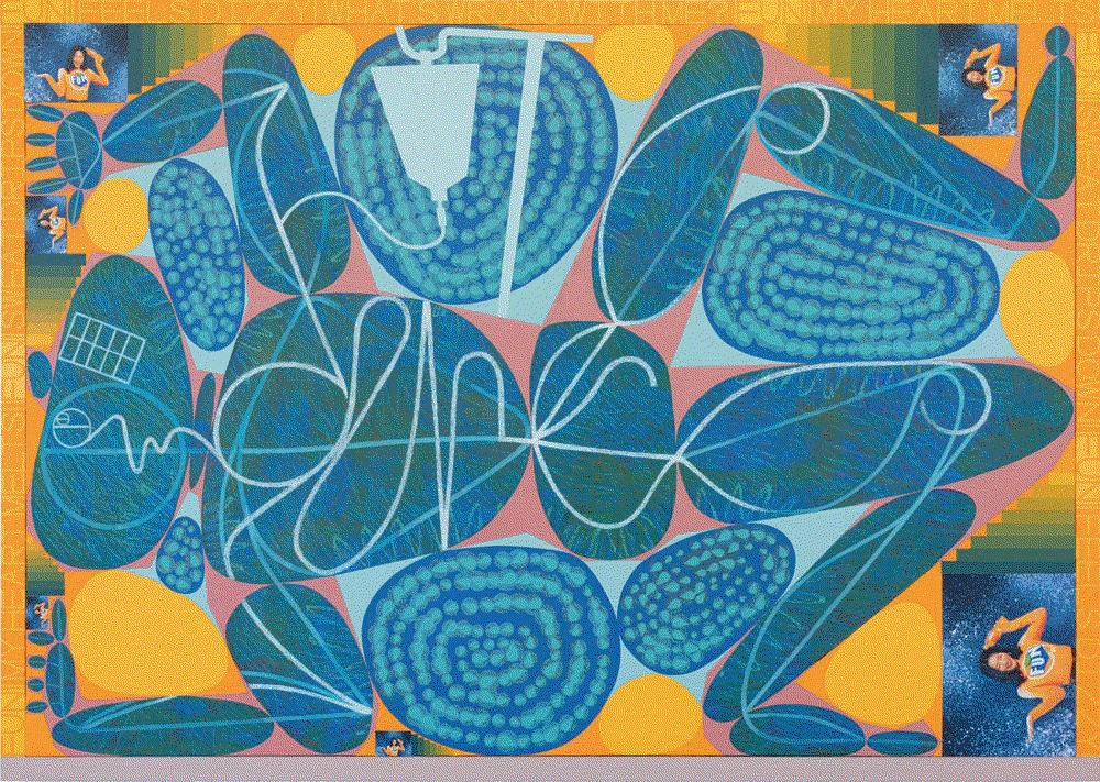 And yes I am also interested in wellness. My relationship to the body is kind of weird, in that I was really, really sick for a long time, mysteriously sick. There are periods of my life where I could barely walk, and then I'd be well, and then sick again, and it just made me totally insane. And I had no idea what was wrong with me. I was sick and it was just really negatively affecting my life. Then, in 2017, I got diagnosed with an autonomic nervous system disorder called postural orthostatic tachycardia, which is basically when your body can't regulate your blood pressure when you're standing or sitting. It's only when you're lying down that your body's normal. I was really, really sick in 2016 and ‘17 when I was making the medicine paintings and the therapy paintings so I absolutely, 100%, think that my interest in medicine and wellness was autobiographical.