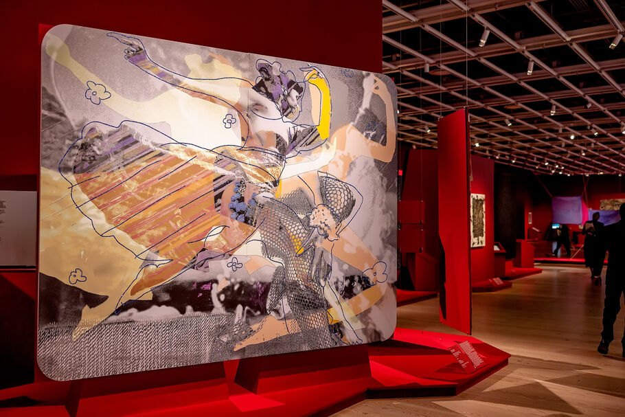 Mickalene Thomas, installation view of Katherine Dunham: Revelation, 2024, in “Edges of Ailey” at the Whitney Museum of American Art, 2024. Photo by David Tufino. Courtesy of the Whitney Museum of American Art.