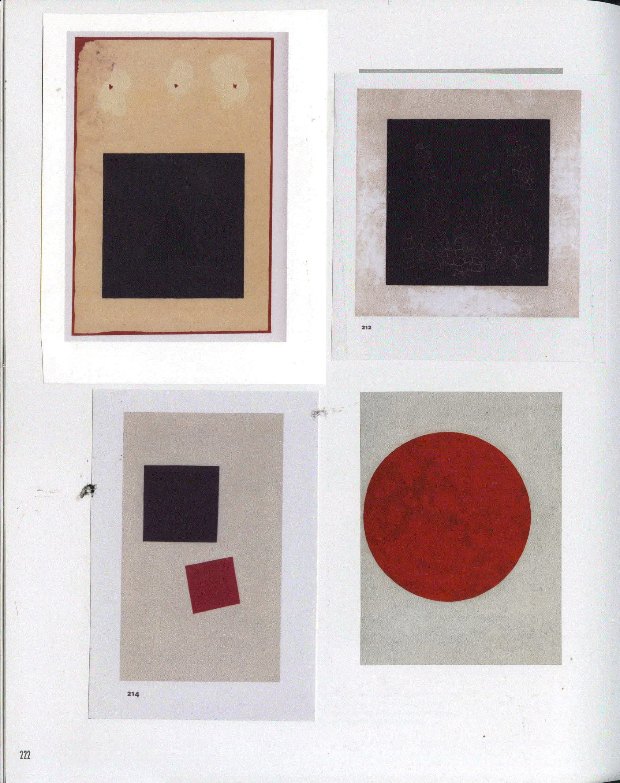 Pour annotated and redacted portions of text for his zine “Re-Inventing Abstraction 1910-1925” (left) and pasted an image of a Tantric Hindu painting from the 5th–6th centuries next to Kazimir Malevich’s 1915 “Black Square” (right).