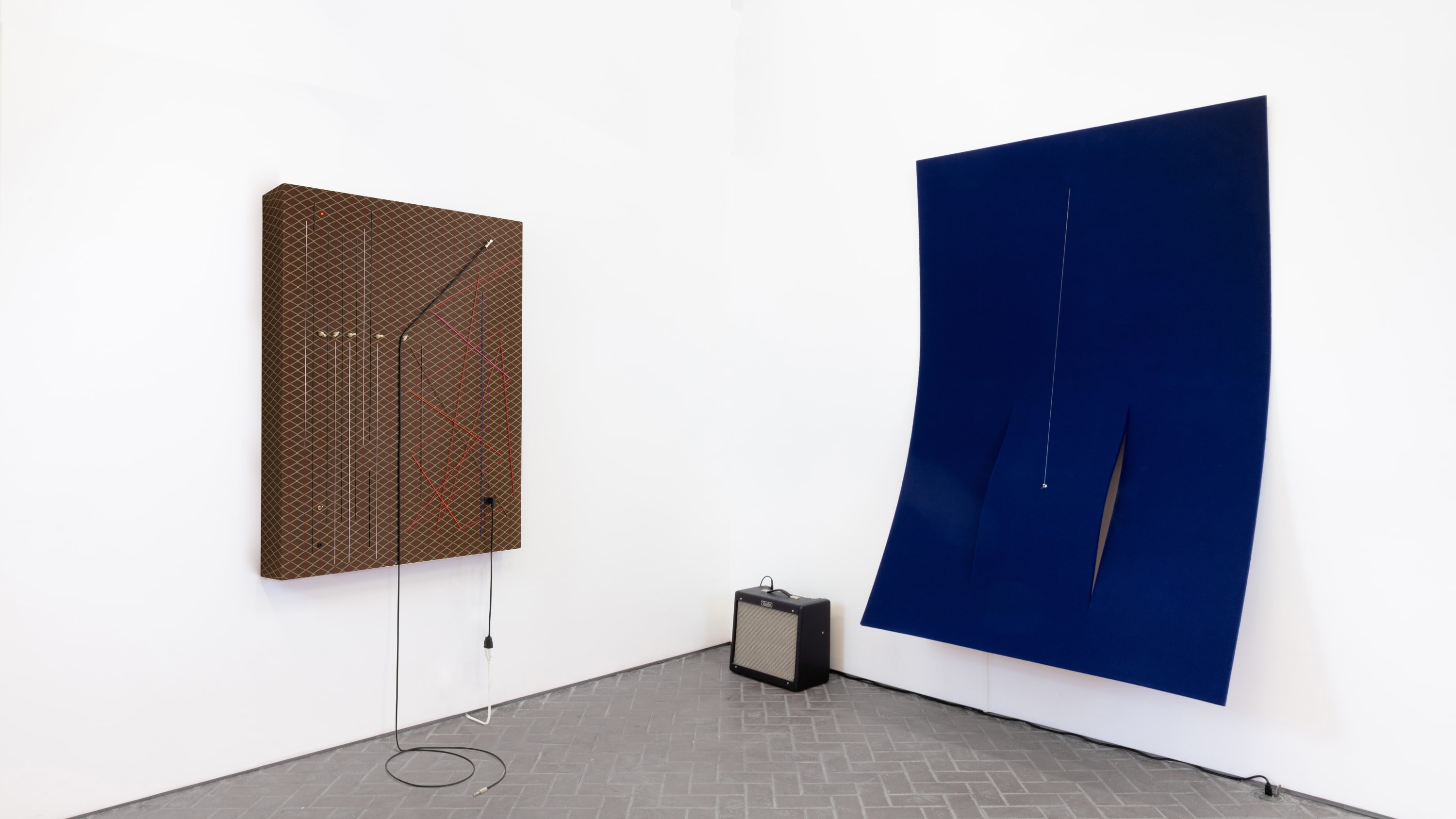 Naama TsabarWork on Felt (Variation 29) Purple, 2021Carbon fiber, epoxy, wood, felt, microphone, guitar amplifier80 3/4 x 66 1/2 x 21 3/4 inches -